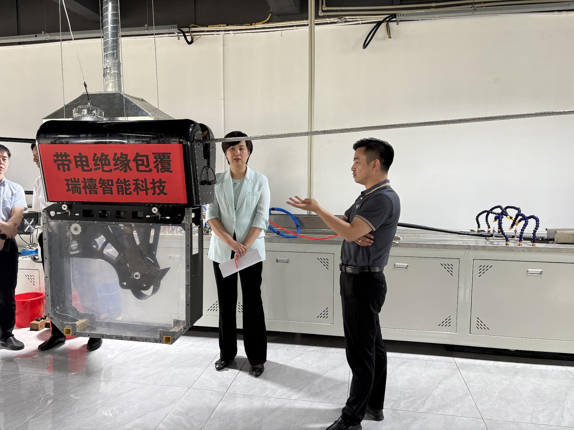 2025年5月27日,常州经济开发区党工委副书记、管委会主任刘敏同志莅临江苏瑞禧智能电力科技有限公司考察指导工作。对公司自主研发的各类带电作业智能机器人和新材料进行调研。